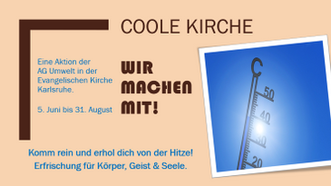 Seit Jahren nehmen die Hitzerekorde hierzulande zu. Die Sommer werden heißer und länger. Dieses Jahr werden einige Karlsruher Gemeinden der Evangelischen Kirche in Karlsruhe erstmals als „Coole Kirchen“ ihre Türen öffnen, um Abkühlung, Trinkwasser und ein Zur-Ruhe-Kommen anzubieten.
