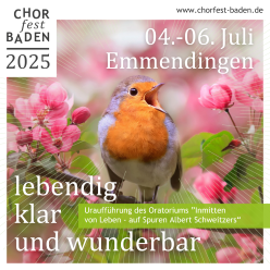 Lebendig, klar und wunderbar“ – unter diesem Motto findet vom 4. bis zum 6. Juli 2025 in Emmendingen das Chorfest Baden 2025 statt. Mehr als 2.000 Sängerinnen und Sänger und rund 10.000 Besucher werden an den drei Tagen im Südbadischen erwartet. Darunter auch einige Karlsruher Ensembles.