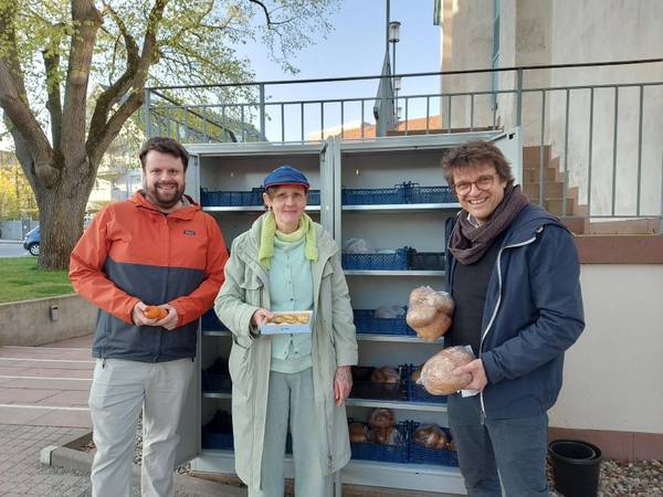 Der Fairteilerschrank am Stephanienbad wird seit mehreren Jahren sehr gut angenommen, war aber auch in die Jahre gekommen. Jetzt gibt es einen neuen Schrank, den die Südkreuzgemeinde gesponsert hat, so dass das Projekt weitergehen kann.