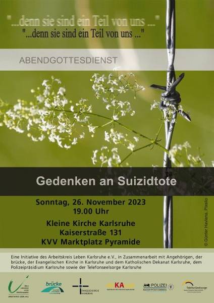 Wenn sich jemand das Leben nimmt, ist das für Verwandte und Freunde nur ganz schwer zu verkraften. Der ökumenische Abendgottesdienst am Ewigkeitssonntag, 20. November, 19 Uhr in der Christuskirche soll Raum und Zeit geben, gemeinsam an sie zu denken und um sie zu trauern.
