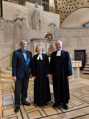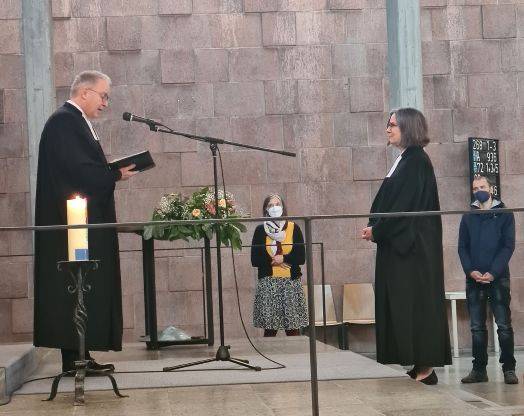 Seit Anfang März ist Dr. Heike Wennemuth die neue Pfarrerin auf der zweiten, vakanten Pfarrstelle der Evangelischen Hoffnungsgemeinde Karlsruhe. Zusammen mit Pfarrer Sören Suchomsky verantwortet sie die Gemeindearbeit in den Stadtteilen Daxlanden und Grünwinkel. In einem Festgottesdienst am Sonntag „Lätare“ (auf Deutsch: „Freut euch“), 27. März, wurde sie in die Gemeinde von Dekan Dr. Thomas Schalla eingeführt.