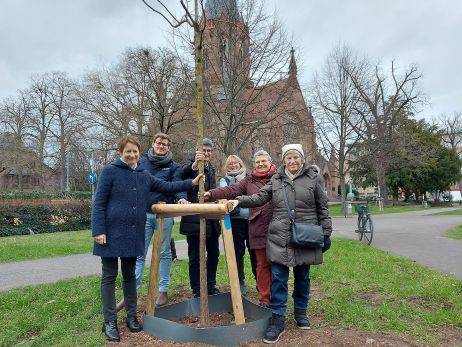 Auf dem städtischen Grundstück vor der Christuskirche steht nun eine im Winter angepflanzte Koelreuteria, eine Blasenesche. Sie ist im Zeichen des Klimawandels robuster und wetterbeständiger als heimische Baumarten. Das Besondere: Die Gemeinde an der Christuskirche hat für diesen jungen Baum eine Patenschaft übernommen.