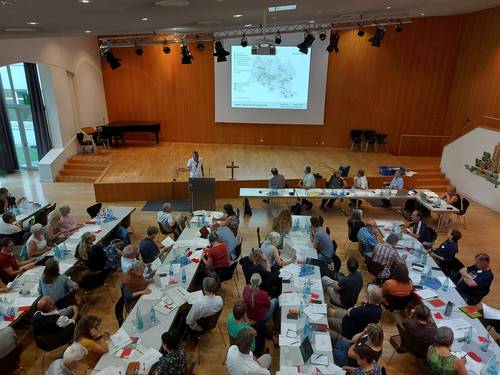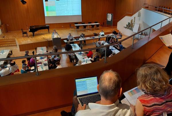 Die Stadtsynode kam am 9. Mai im Albert-Schweitzer-Saal zu einer Sondersitzung zusammen, um die Diskussion um die "Kriterien-Matrix" weiterzuführen, die auf der Tagung der Stadtsynode am 8. April nicht abgeschlossen werden konnte. Die Anregungen und Hinweise aus der Sondersitzung gehen an den Stadtkirchenrat, der über die Gebäudefragen entscheidet.